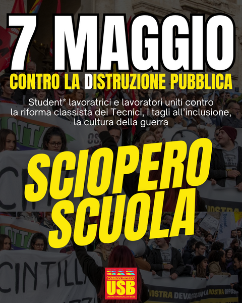 Il 7 maggio si sciopera. Studenti e lavoratori uniti, contro la guerra, contro la leva, contro la scuola classista di Valditara – tecnici e licei. Per una nuova scuola pubblica, statale, democratica e antifascista.