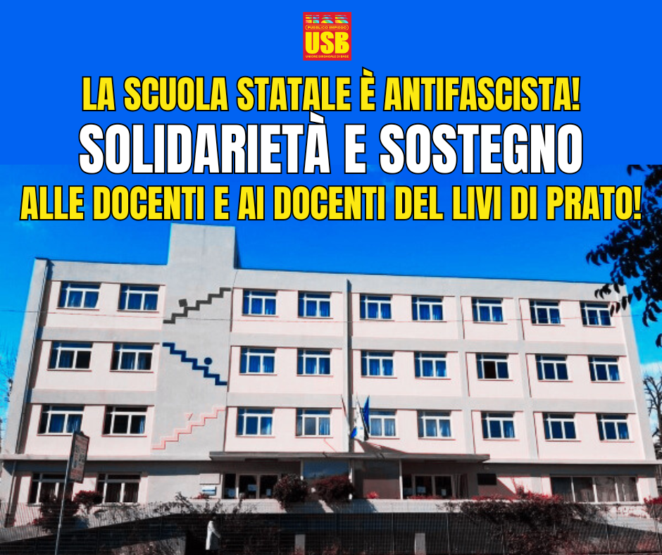 USB Scuola Toscana esprime solidarietà e sostegno alle docenti e ai docenti dell’Istituto Superiore “Carlo Livi” di Prato, sotto attacco per aver dedicato al tema dell'antifascismo una giornata di attività didattica nell'ambito delle ore di educazione civica.