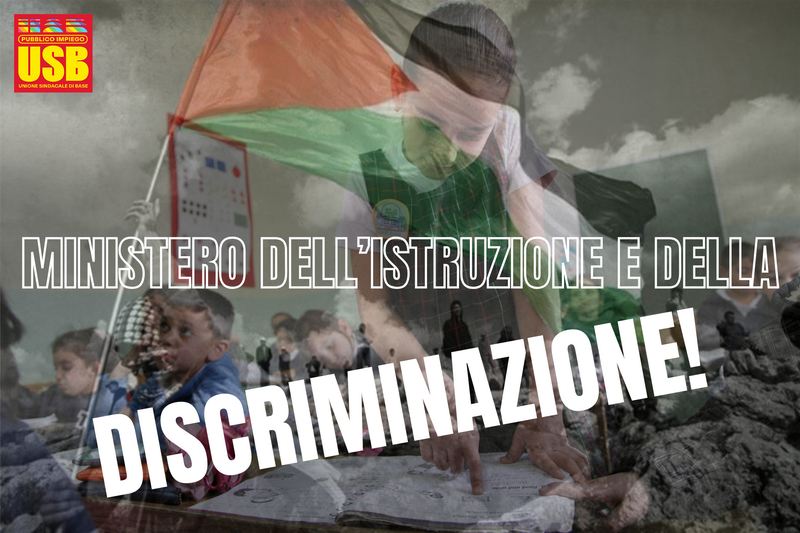 USB Scuola Roma denuncia la gravissima nota emanata dall’Ufficio Scolastico Regionale per il Lazio – Ambito territoriale di Roma, su indicazione del Ministero dell’Istruzione e del Merito, che richiede alle istituzioni scolastiche la rilevazione degli alunni e delle alunne palestinesi iscritti per l’anno scolastico 2025/2026.