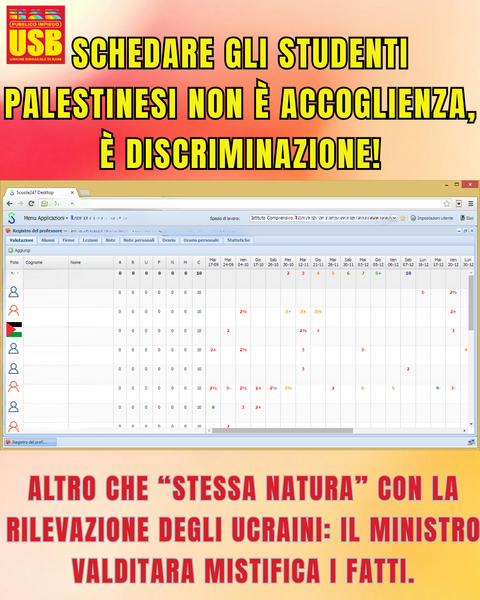 USB Scuola - Schedatura studenti palestinesi. Altro che “stessa natura” con la rilevazione degli ucraini: il Ministro Valditara mistifica i fatti. Schedare studenti palestinesi non è accoglienza, è discriminazione!